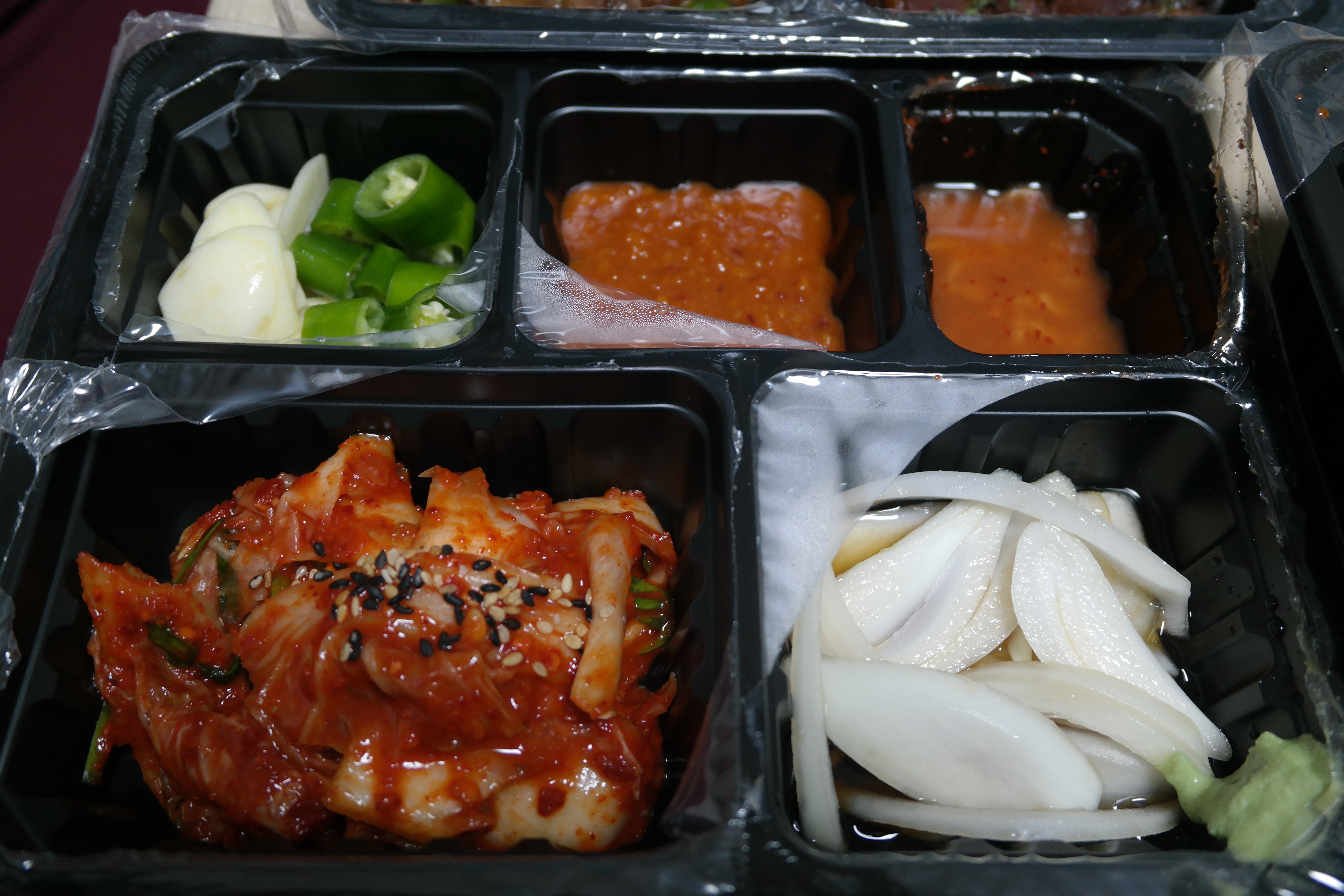 김치와 양파장아찌, 마늘, 고추, 쌈장, 새우젓!