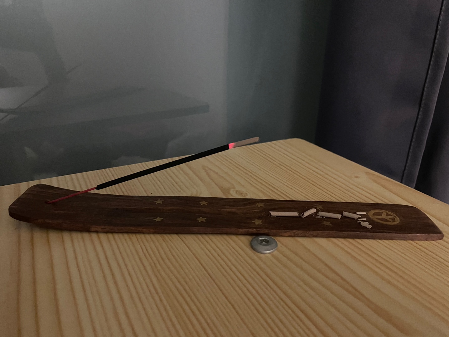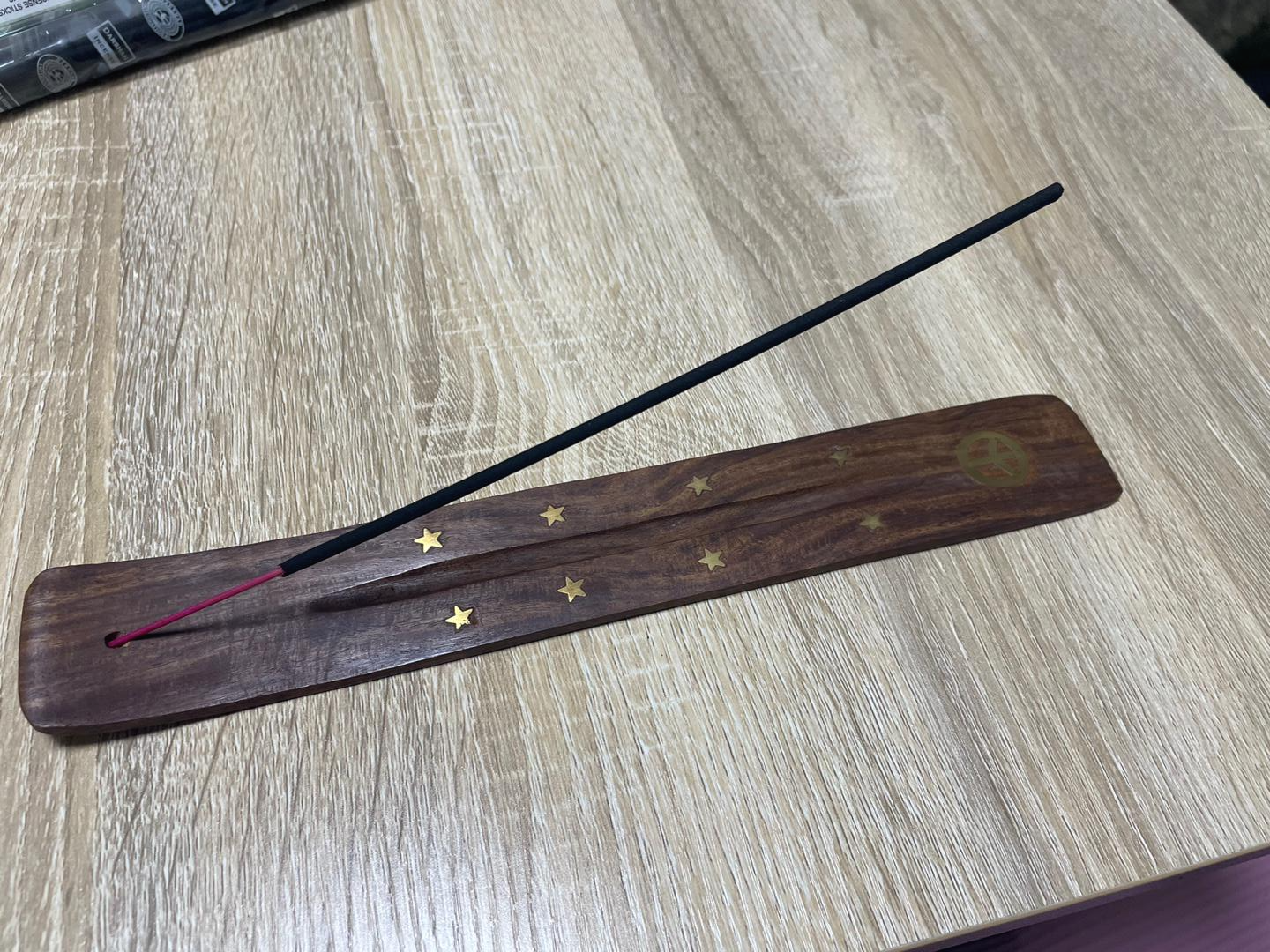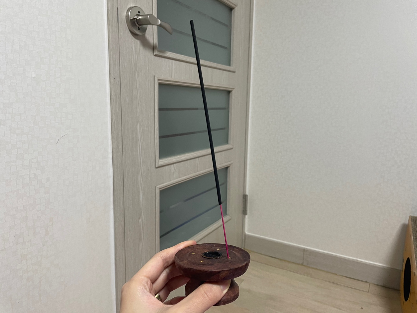 인센스스틱을 다 피우고나서 새로운 스틱을 끼워놔두면 냄새가 방안에 퍼져 계속 난다.