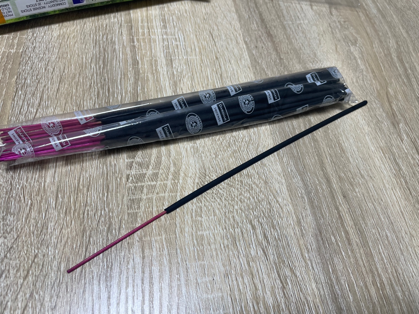 포장을 열면 봉지로 포장된 낱개의 인센스스틱이 들어있음.